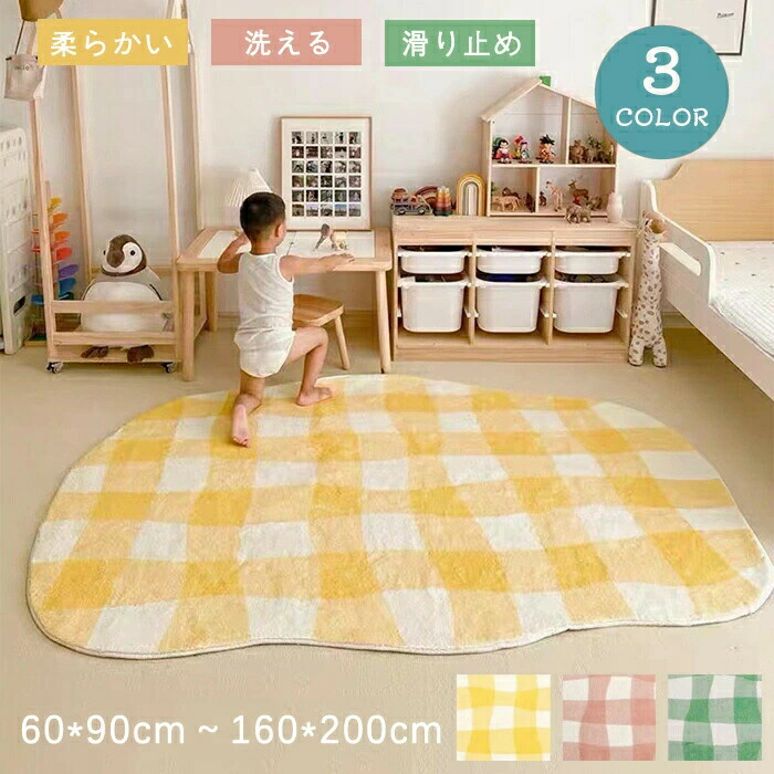 ラグ カーペット ズレない 可愛い 赤ちゃん チェック柄 80×160 160×200 イエロー グリーン ピンク リビング ダイニング かわいい 引越し祝い 新生活 キッズルーム インテリア