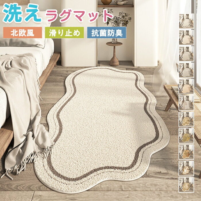 ラグマット ラグ 洗える ラグカーペット カーペット 異形 特殊形状 不規則 絨毯 かわいい シンプル 大きめ 大判 長方形 四角 滑り止めマット リビング 室内 インテリア フロアマット