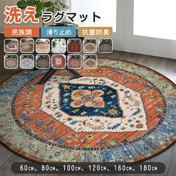 ラグマット ラグ 洗える ラグカーペット カーペット 大きめ 小さめ 円形 ヴィンテージ風 ペルシャ風 滑り止めマット ウォッシャブル なめらか ナチュラル 通気性 一人 インテリア