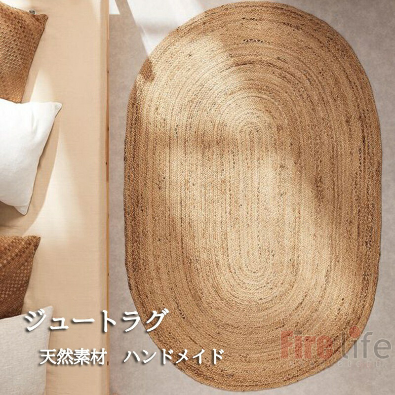 ラグマット ジュート手編み たたみ ハンドメイド カーペット 玄関マット キッチンマット 楕円形 長方形 ジュートマット 天然植物繊維 インテリア 床マット 室内 屋内 床保護 和室 和風 おし 敷物