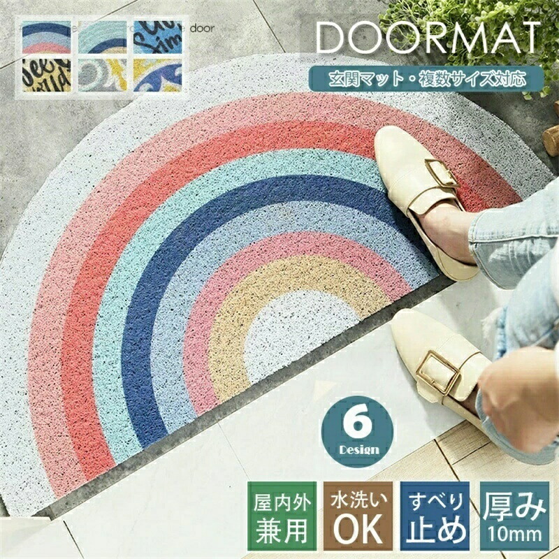 45x90/60x120 半円 太陽 虹 レインボー 玄関ラグ ラグマット ベランダドアマット セミサークル 滑りにくい ウォッシャブル オールシーズン 家庭用 敷物 汚れ防止 素材