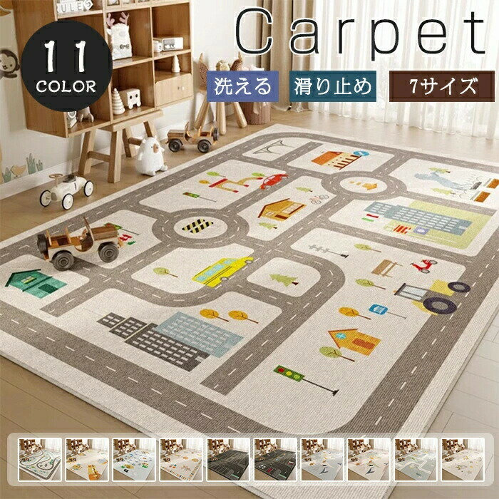 ラグ 洗える 絨毯 子供部屋 道路 冒険 ラグマット かわいい プレイマット カーペット 滑り止め 北欧 じゅうたん 大判 長方形 オールシーズン おしゃれ プリント ルームマット リビン 家庭