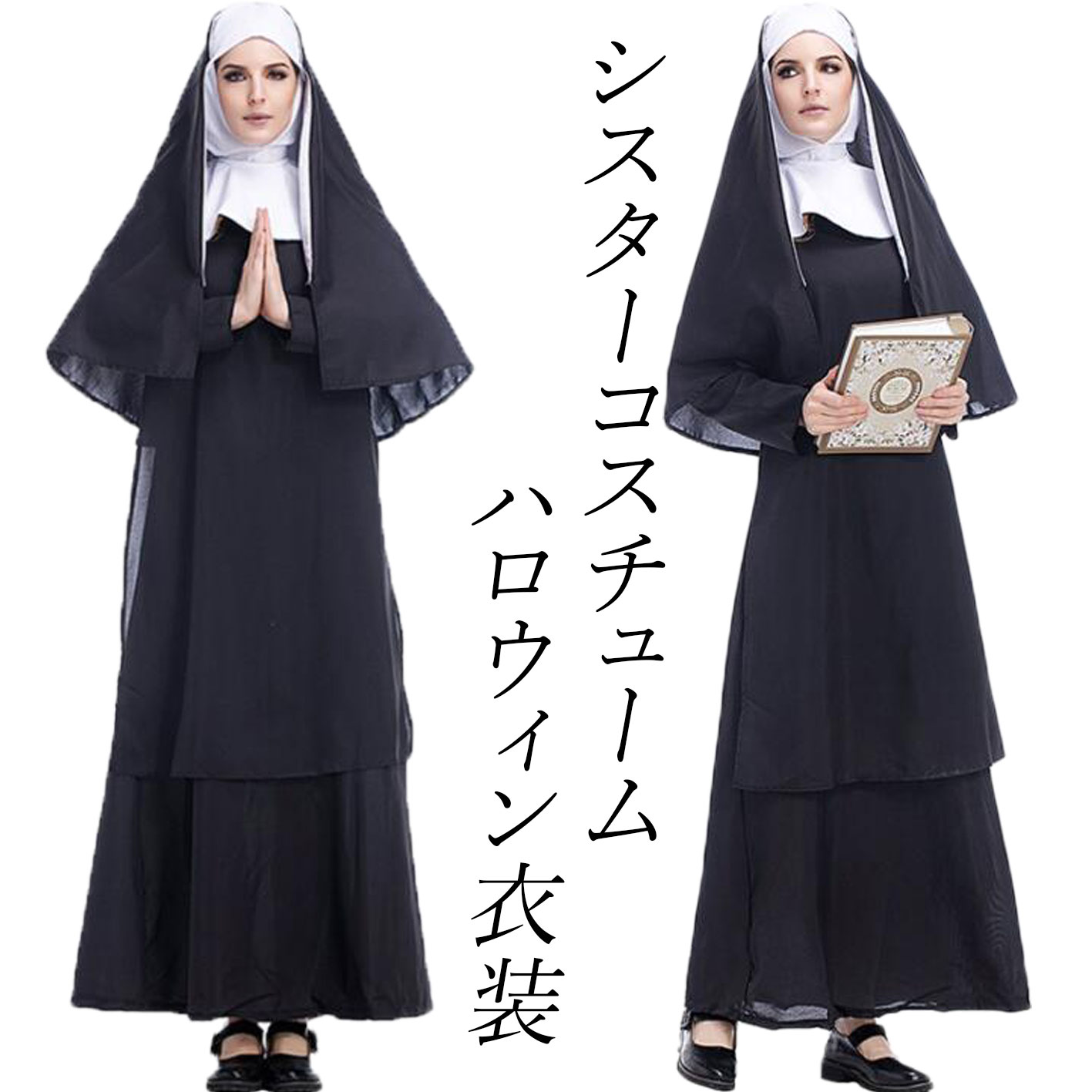 シスターコスチューム 大人ハロウィンコスチューム ハロウィン衣装 マキシ丈ワンピース ゴシック ホラーコスチューム ハロウィンパーティー
