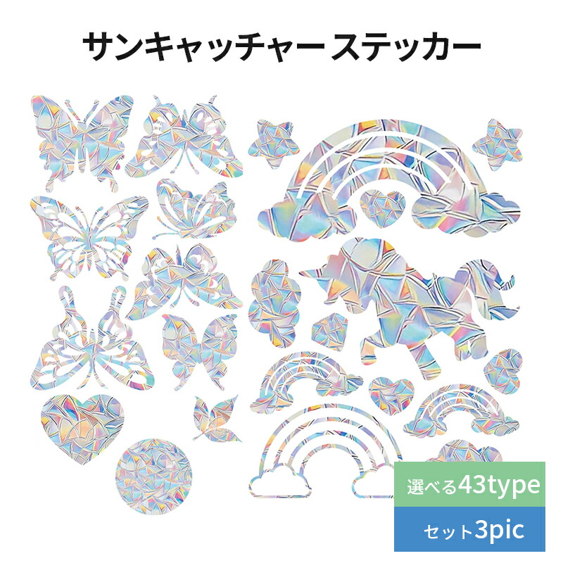 サンキャッチャー ステッカー 窓シール 丸形 蝶々形 3セット レインボー プリズムシール インテリア