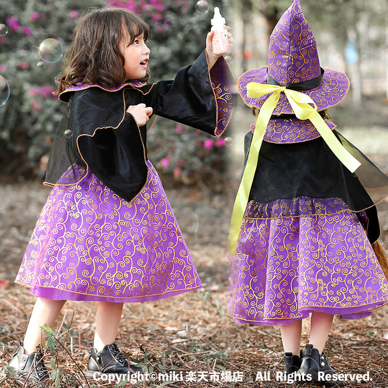 送料無料 ハロウィン コスプレ 子供 ハロウィン 衣装 4点セット ハロウィン 仮装 コスプレ 女の子 演出服 お姫様 コスプレ衣装 子供 仮装 女の子 キッズ コスプレ 魔女