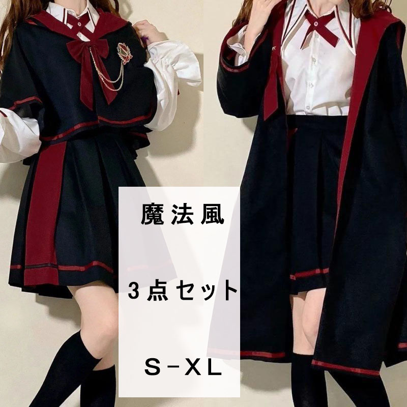 長袖 ゴスロリ 衣装 制服 マント 森ガール 学生服 スカート 魔法風 学園風 コスプレ リボン お嬢様 ドレス コスチューム 中世紀 宮殿風 アニメ ショートマット ロングマント