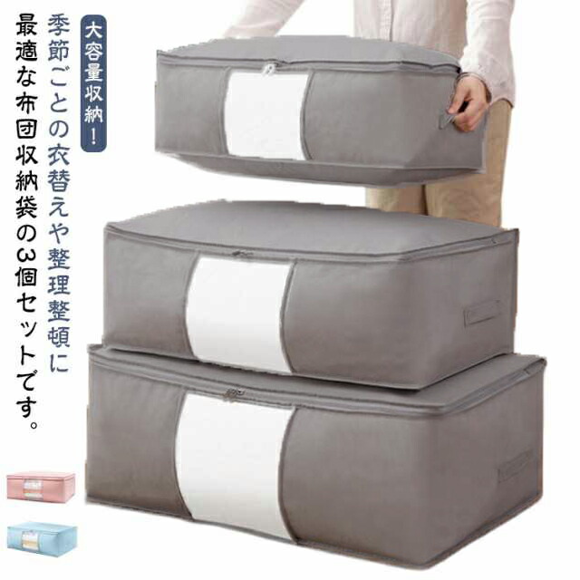 布団収納袋 3枚セット 布団収納 敷布団収納 不織布 衣替え 布団 服 ぬいぐるみ 掛け布団 布団ケース 収納ケース 収納袋 羽毛布団 収納 押し入れ 窓付き 中身が見える 持ち手 クローゼット