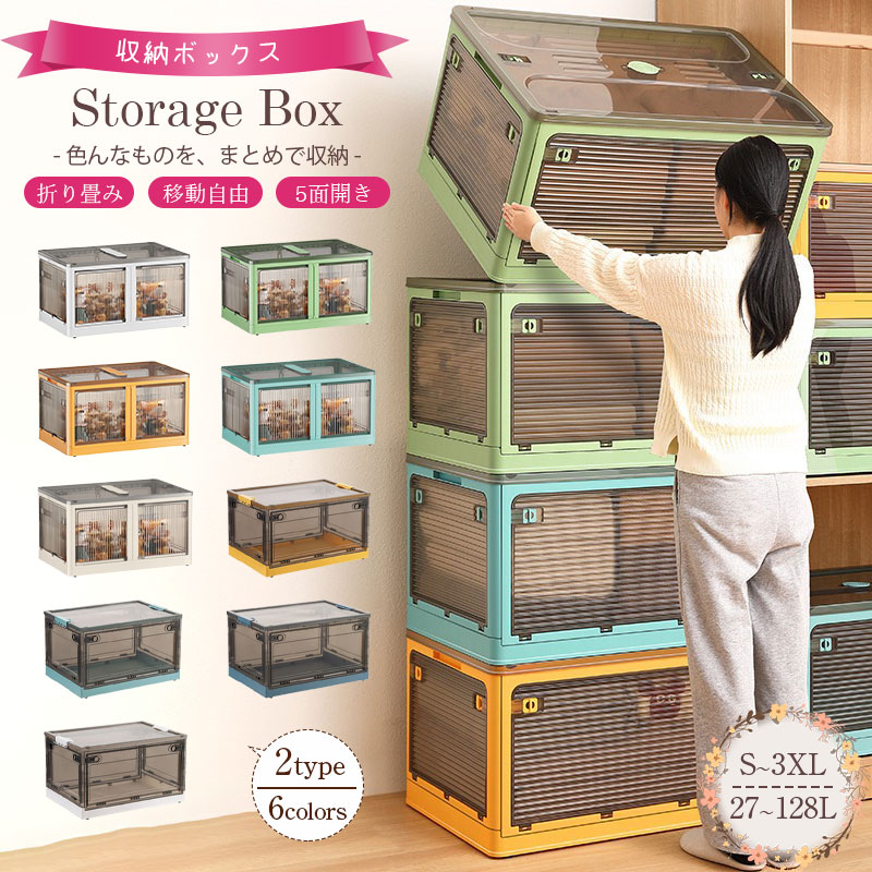 \最大30%OFF/収納ボックス 収納ケース 折り畳み 5面開き 室内 折りたたみ 組み立て簡単 蓋つき 衣装収納 省スペース クリア 押入れ収納 大容量 キャスター付き 安定 耐久性 積み重 お洒落