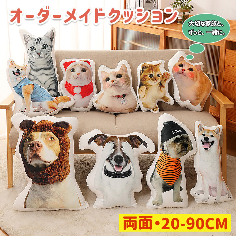 \スーパーsale割引500円クーポン利用可能/オーダーメイドクッション ペット 抱き枕 メモリアルグッズ 高密度 メモリアルクッション 両面印刷 洗える クッション写真 記念品 メモリア ペット供養