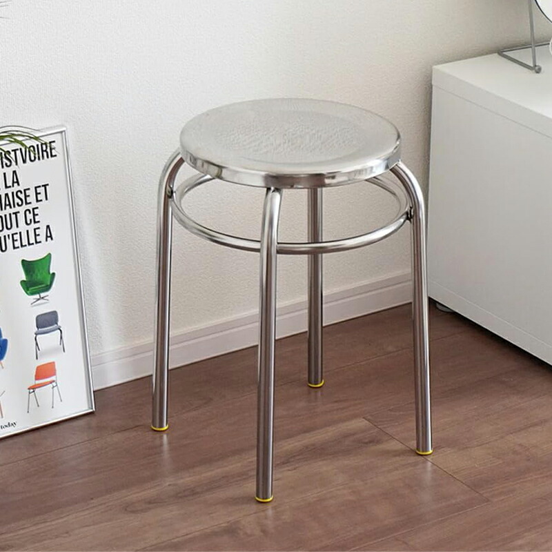 \スーパーSALE割引クーポン利用可能 9.11迄/ステンレススツール ラウンドスツール 椅子 おしゃれ シンプル ステンレス イス シルバー 無機質 積み重ね 韓国インテリア スタッ スタイリッシュ