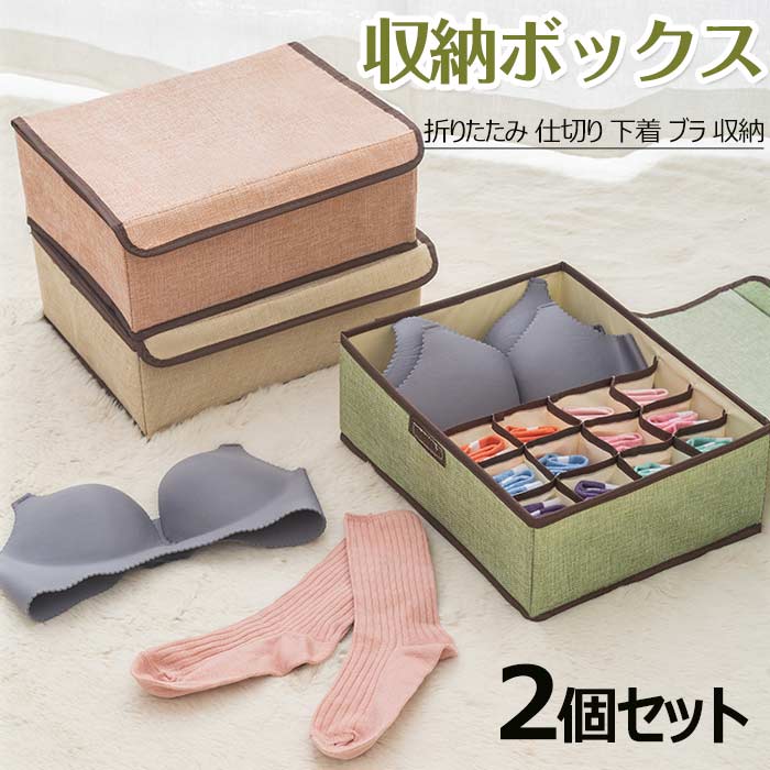 同色2個セット 下着収納ボックス 折りたたみ 蓋付き 収納ケース 収納箱 引出し収納 仕切り 仕切りボックス 13マス 17マス 整理整頓 片付け 無地 大容量 省スペース 下着 靴下 小物収納 ブラ