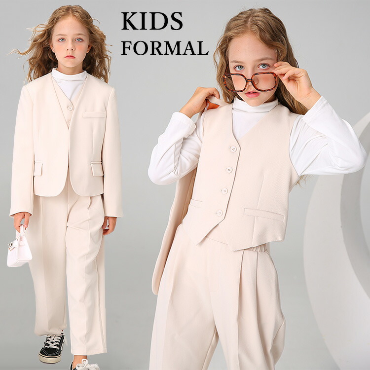 卒業式 パンツスーツ 女の子 制服 韓国 卒服 ベスト フォーマルスーツ ベージュ ピアノ発表会 子供服 発表会 セットアップ ジュニア フォーマル 小学生 学園祭 結 入学式