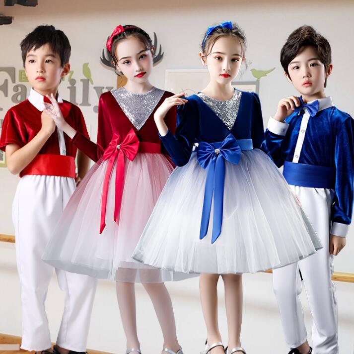 子供ダンス衣装 男の子 紳士服 セットアップ 女の子 チールワンピース キッズ 舞台演出服 合唱団体服 男女お揃い ピアノ 発表会 子供服 演奏会 リボンワンピース 長袖/半袖