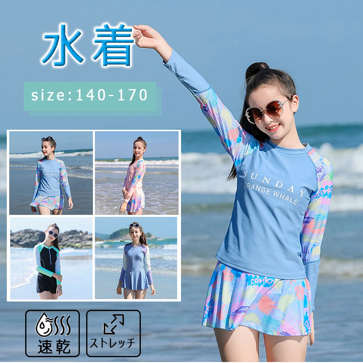 夏着 長袖 スクール水着 おしゃれな かわいい 海外旅行・小学生 旅行リゾート