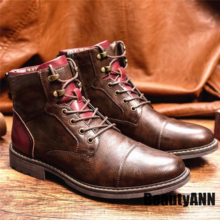 サイドジッパー ブーツメンズ ハイカット 秋 冬 レザー 合皮 ワークブーツ プレゼント ギフト ショートブーツ