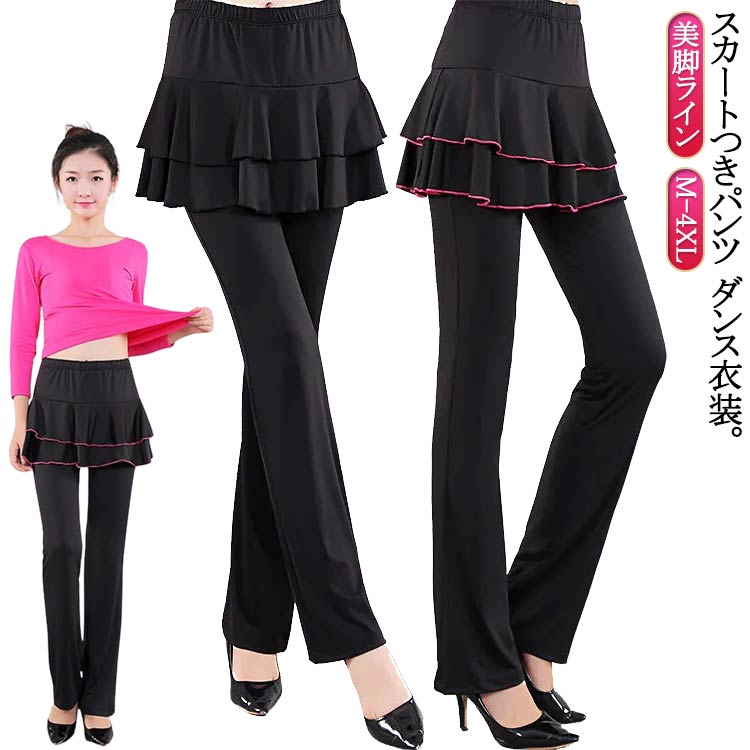 ダンスパンツ レディース スカート付き パンツ ダンス衣装 体型カバー ヨガ ダンス ジャージ ブーツカット ミニスカート スカパン フィットネス フラメンコ ベリーダンス 美脚パンツ 衣 社交ダンス