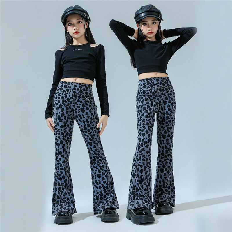 2点セット ガールズ ジャズ ダンス衣装 韓国 k-pop ヒップホップ チアガール タンクトップ ヘソ出し 肩だし 豹柄 トップス パンツ jazz セットアップ スーツセット 可愛い 舞台 女の子
