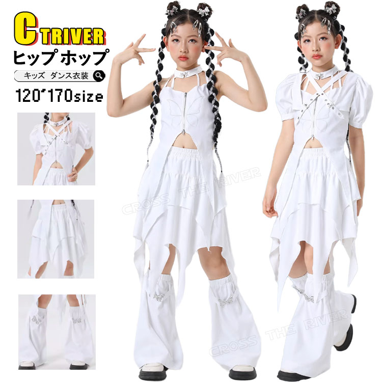 k-pop 衣装 白 キッズダンス衣装 セットアップ へそ出し スカート トップス 足カバー ホワイト 韓国 アイドル ヒップホップ 女の子 カッコイイ キッズ 子供 演出服 ジャズダン ダンス