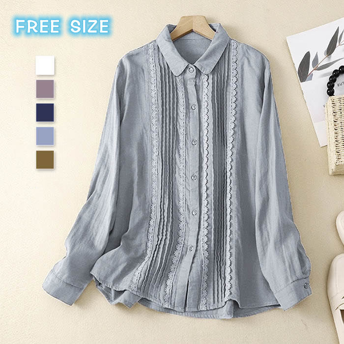 ガーゼ シャツ レディース 長袖 春 秋 シャツ コットン レース フリル 切り替え ガーゼシャツ プルオーバー ダブルガーゼ オフィス トップス リラックス