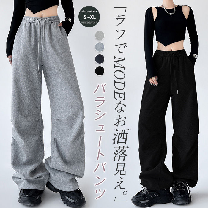 パラシュートパンツ レディース スウェット パンツ ボトムス ワイド タック スウェットパンツ カーゴパンツ イージーパンツ ワイドパンツ ロング丈 ロングパンツ カーゴ 裾2wa ズボン