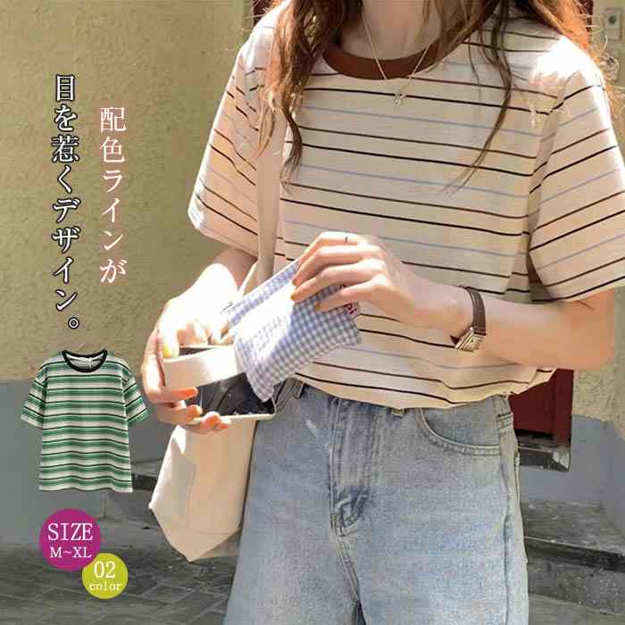 ボーダー tシャツ レディース 半袖 ゆったり 配色 カジュアル 夏 クルーネック 春夏 薄手 ボーダー柄 きれいめ シャツ 綿混 プルオーバー カットソー トップス おしゃれ