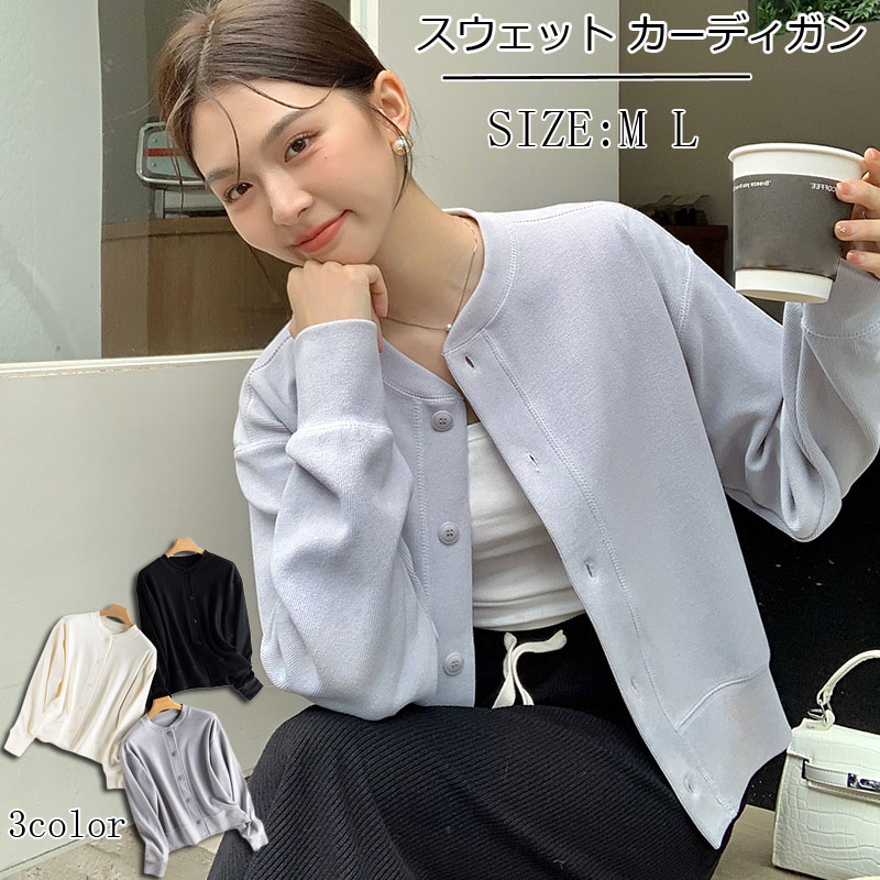 スウェット カーディガン レディース 長袖 トップス 体型カバー カジュアル スナップボタン 無地 大人可愛い お洒落