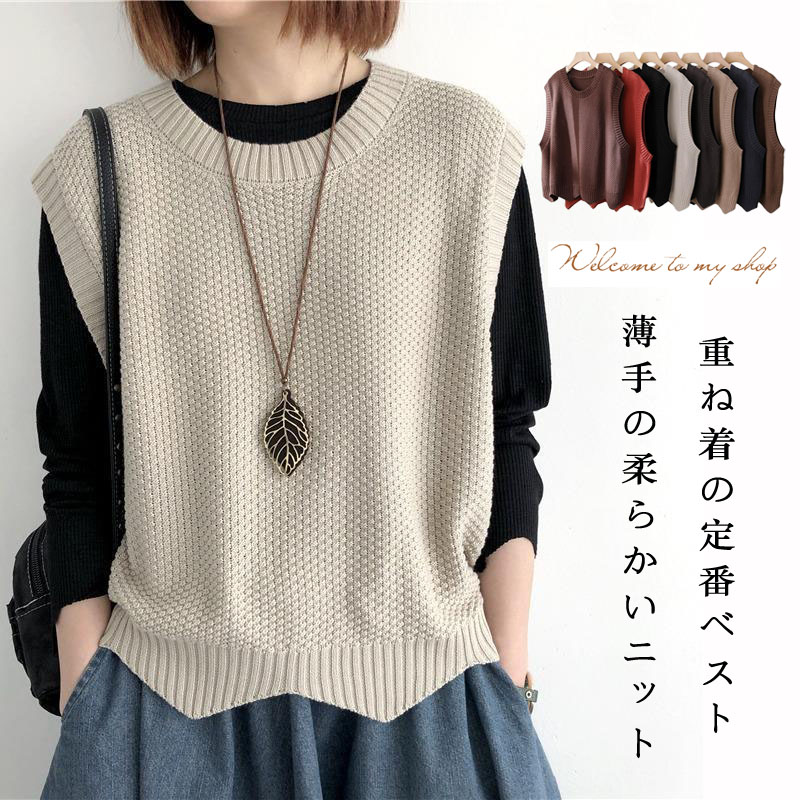 ニット ベスト レディース 春 秋 冬 サマー 春秋 ニットベスト 春ベスト おしゃれ 着回し トップス 体型カバー ノースリーブ シンプル カジュアル レイヤード クルーネック 学生 大人 重ね着
