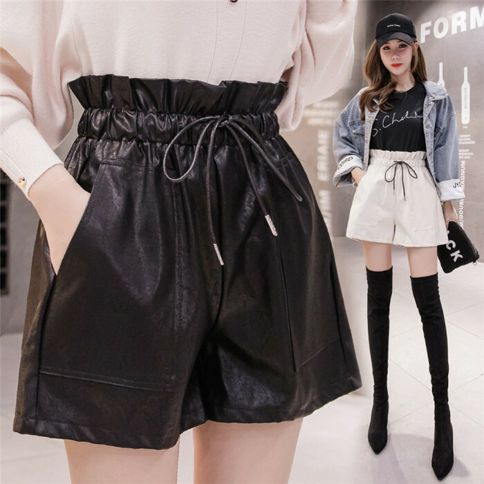 冬着 韓国 新作 お洒落 レディース ボトムス 無地 PU ショートパンツ レザー パンツ ワイドパンツ 大人気 大人 女性 ハーフパンツ カジュアル おしゃれ 可愛い 美脚効果抜群 フ 少女