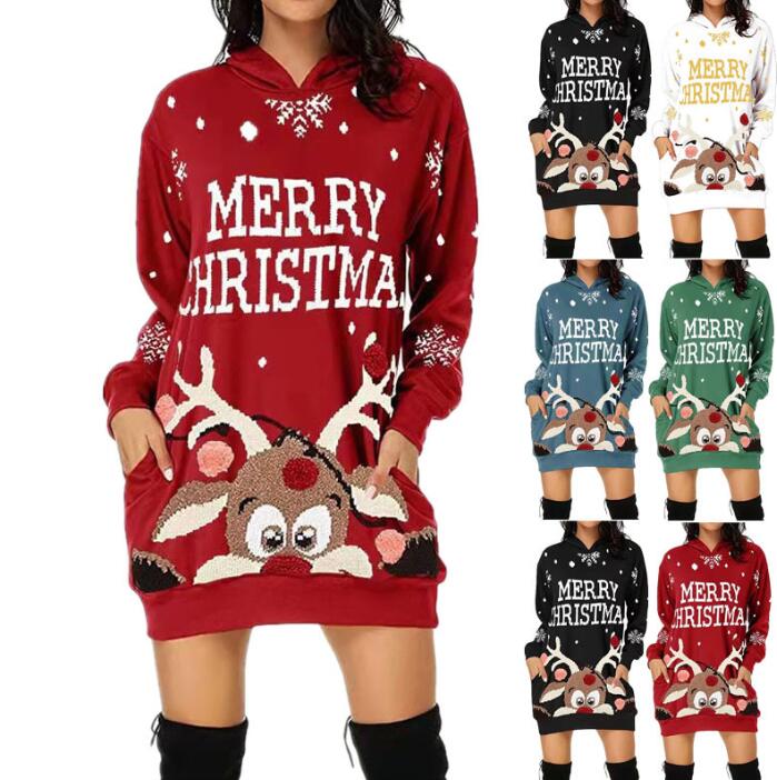 クリスマスパーカーレディースパーカーロング丈パーカーワンピースフード付きクリスマスワンピースレディーストレーナークリスマス鹿