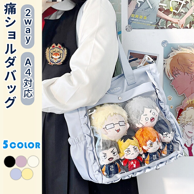 痛バッグ バッグ 痛バ レースアップ レディース ショルダーバッグ トートバッグ いたば リボン A4 a4 大容量 クリアバッグ 推し 推し活 ぬいぐるみ オタク オタク活 オタクバッグ 缶バッチ