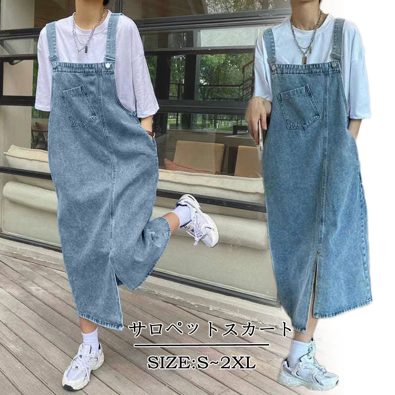 春 夏 秋 レディース デニムサロペット スカート デニムワンピース サスペンダースカート ジーンズオーバーオール オールインワンスカート ポケット付き ブルー 通勤 大人 可愛い 通学