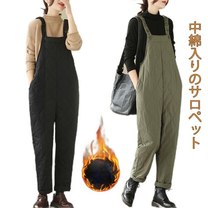 中綿たっぷりで防寒性&保温性抜群!サロペット パンツ レディース 中綿 暖かい オーバーオール レディース ゆったり
