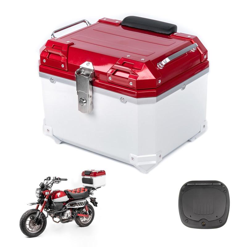 - バイク リアボックス 45 大容量 トップケース 軽量 四角 耐衝撃 バイクボックス 防水 防犯対策 モノキーケース 鍵2本付 簡単脱着 バックレスト 取付ベース付き 汎用